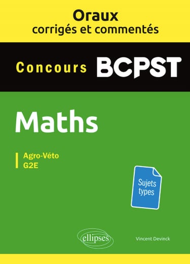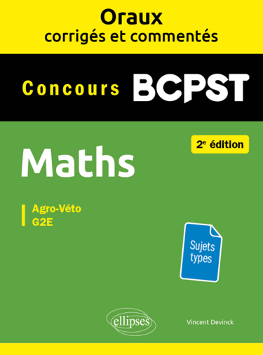 Oraux corrigés et commentés de mathématiques BCPST - Agro-Véto, G2E (2ème édition), éditions Ellipses