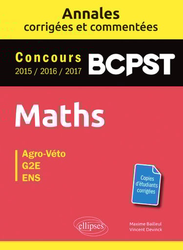 Annales corrigées et commentées pour le concours BCPST (années 2015, 2016, 2017, concours Agro-Véto, G2E et ENS), éditions Ellipses, co-écrit avec Maxime Bailleul