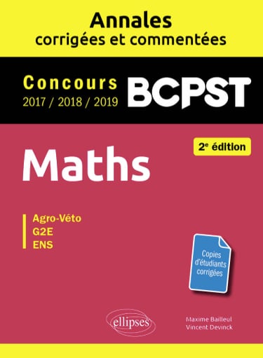 Annales corrigées et commentées pour le concours BCPST (années 2017, 2018, 2019, concours Agro-Véto, G2E et ENS), éditions Ellipses, co-écrit avec Maxime Bailleul